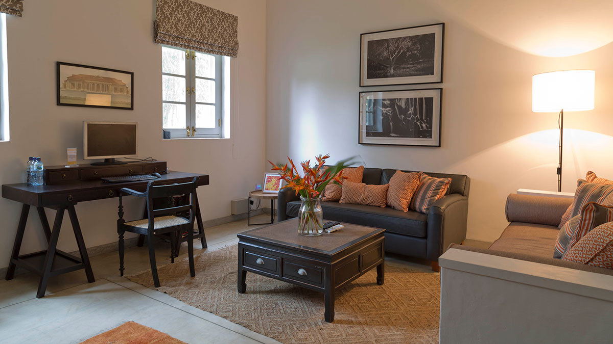 Garden view | Two super single beds | Air conditioning | Ceiling fans | TV | Safe | Sitting area | Desk | Ensuite bathroom with wash basin, rain shower and WC