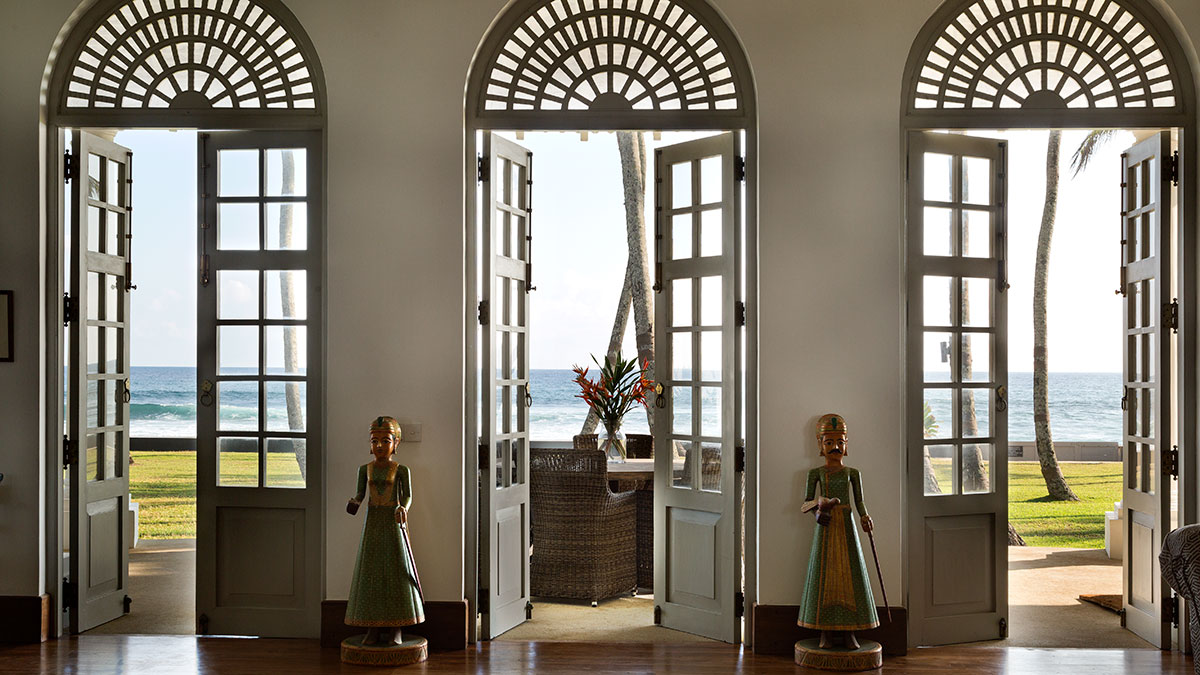 • Sri Lankan-styled three-bedroom residence sits resplendent amid coconut palms on a sprawling estate.